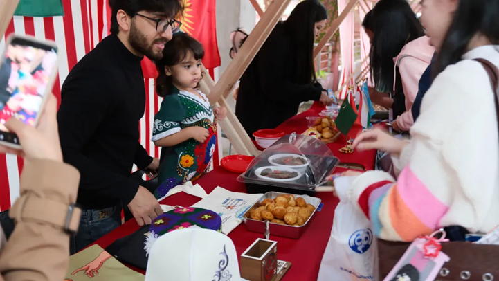 本届文化节涵盖文化集市、中外足球友谊赛和文艺晚会三大板块。文化集市上,来自不同国家的留学生展示了各具特色的民族服装、传统美食、乐器及物产;同时,非遗传承人现场呈现的中国剪纸与书法,更增添了浓厚的中华传统文化韵味。随后的文化晚会汇聚了众多才艺出众的中外学子,为观众奉上一场精彩纷呈的文艺演出。