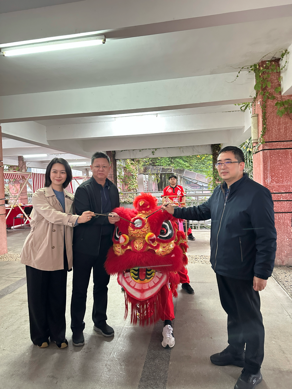 副校长刘锋,纪委书记刘绍武、副校长初可佳为醒狮点睛