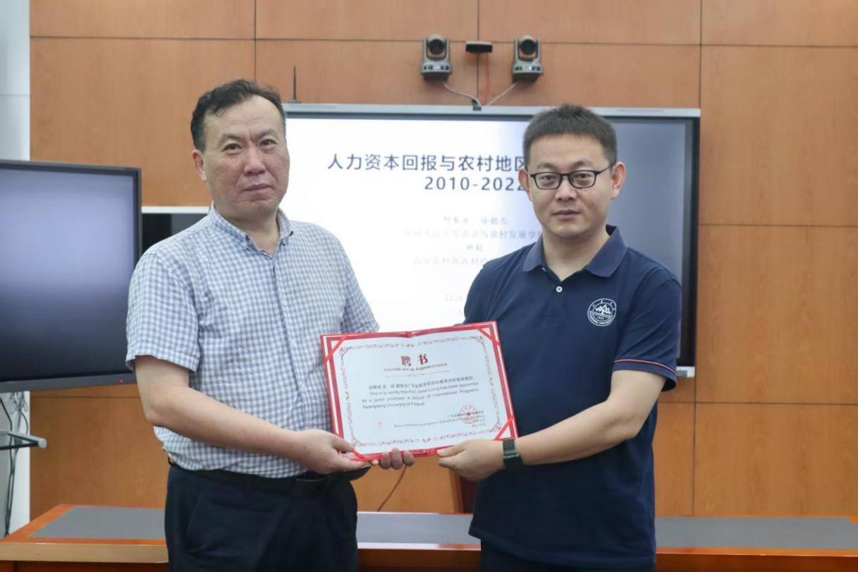 科研处处长杨公齐教授出席讲座,并为梁超研究员颁发国际教育学院客座教授证书。